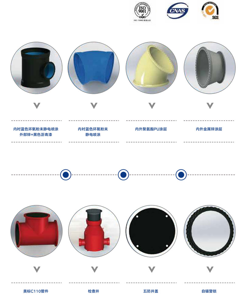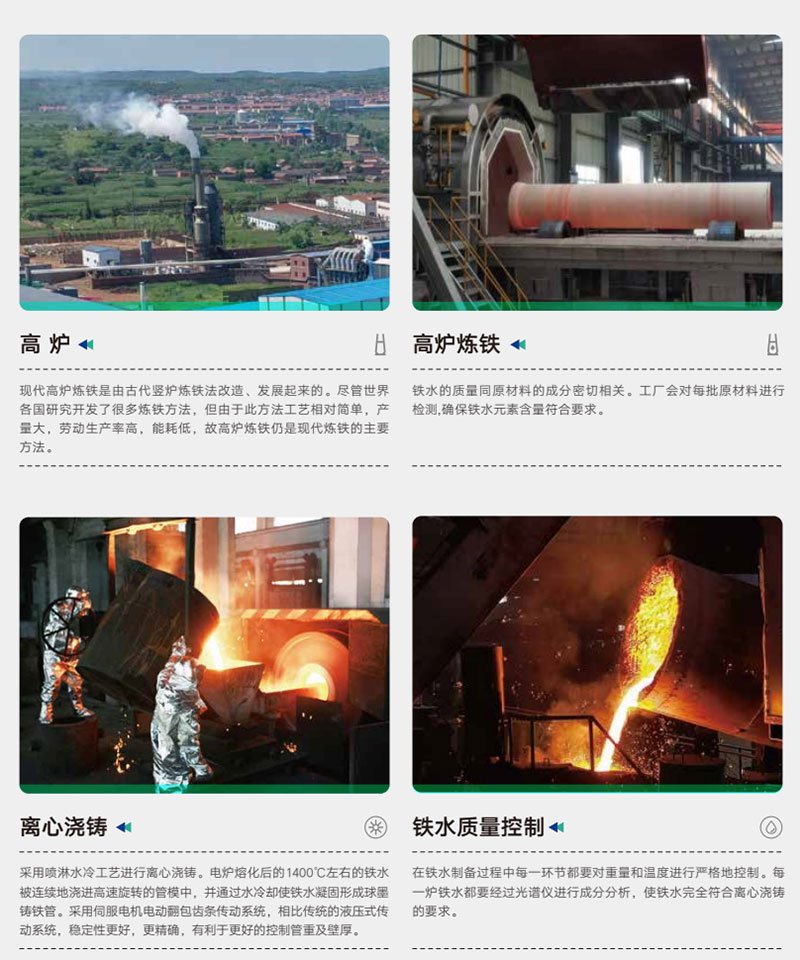 球墨鑄鐵管是指鐵水經(jīng)添加球化劑后,經(jīng)過離心球墨鑄鐵機(jī)高速離心鑄造成的管材。球墨鑄鐵管中石墨是以球狀形態(tài)存在的,克服了片狀石墨對(duì)鐵基體連續(xù)性的阻止作用,使鐵具有了卓越的可延性、柔韌性和抗沖擊性,因而材料本身的機(jī)械性能得到了較好改善,具有鐵的本質(zhì)、鋼的性能。