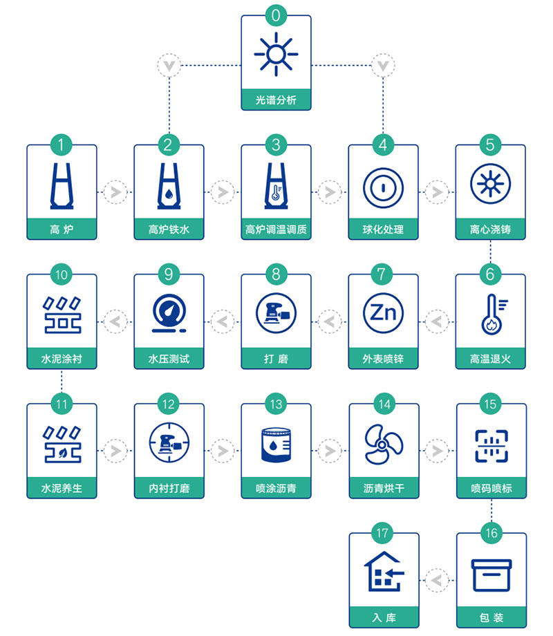 球墨鑄鐵管生產(chǎn)流程: