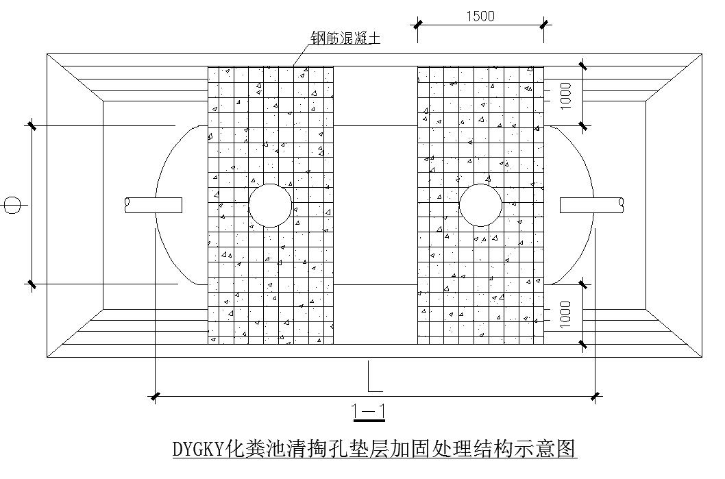 磚砌或混凝土檢查井不得直接接觸罐體要在罐體頂部墊沙300 mm左右并做水泥基礎(chǔ),并按下圖示意扎鋼網(wǎng)(1500mm+大于罐體直徑外側(cè)各1米)混凝土基礎(chǔ)處理后再砌筑井筒。
